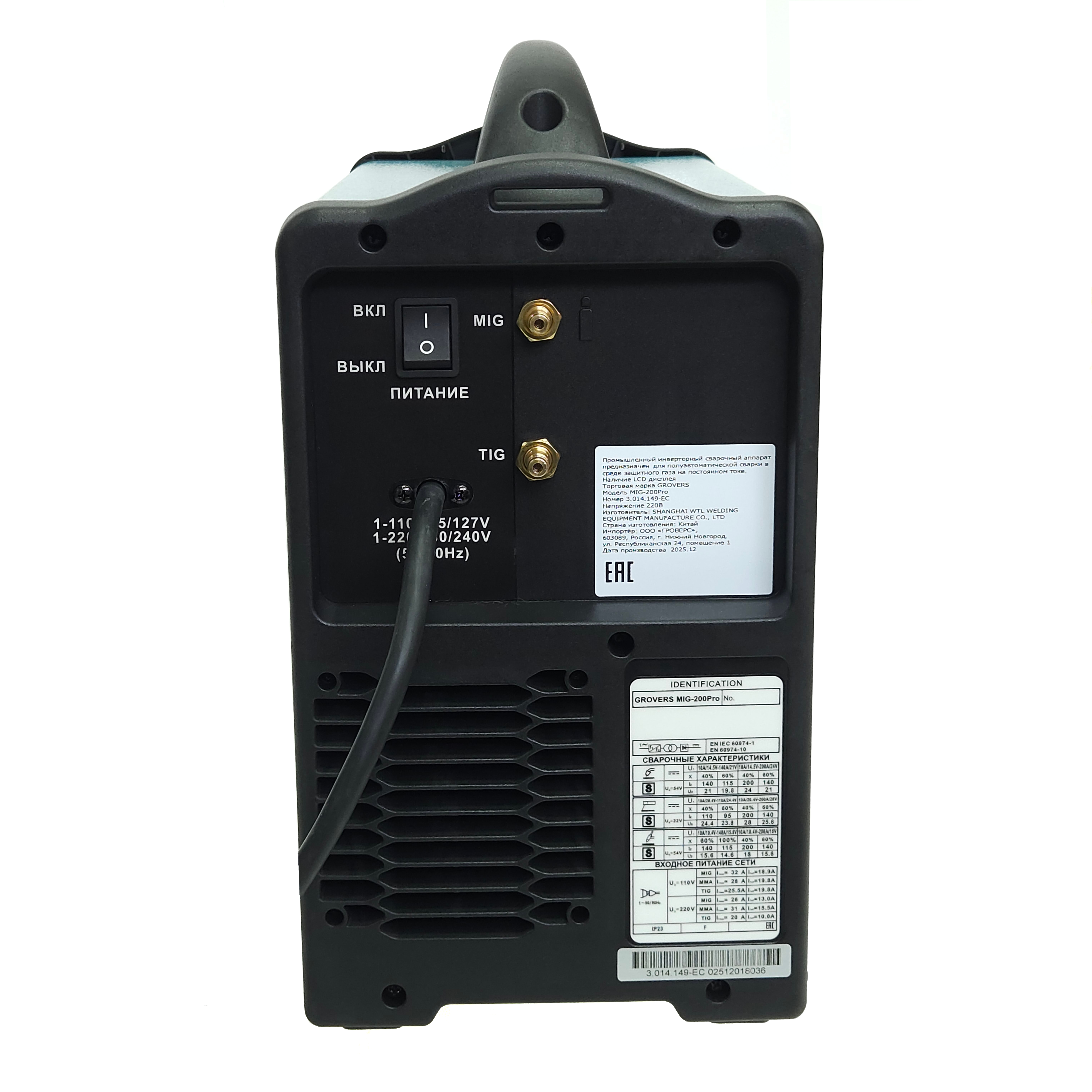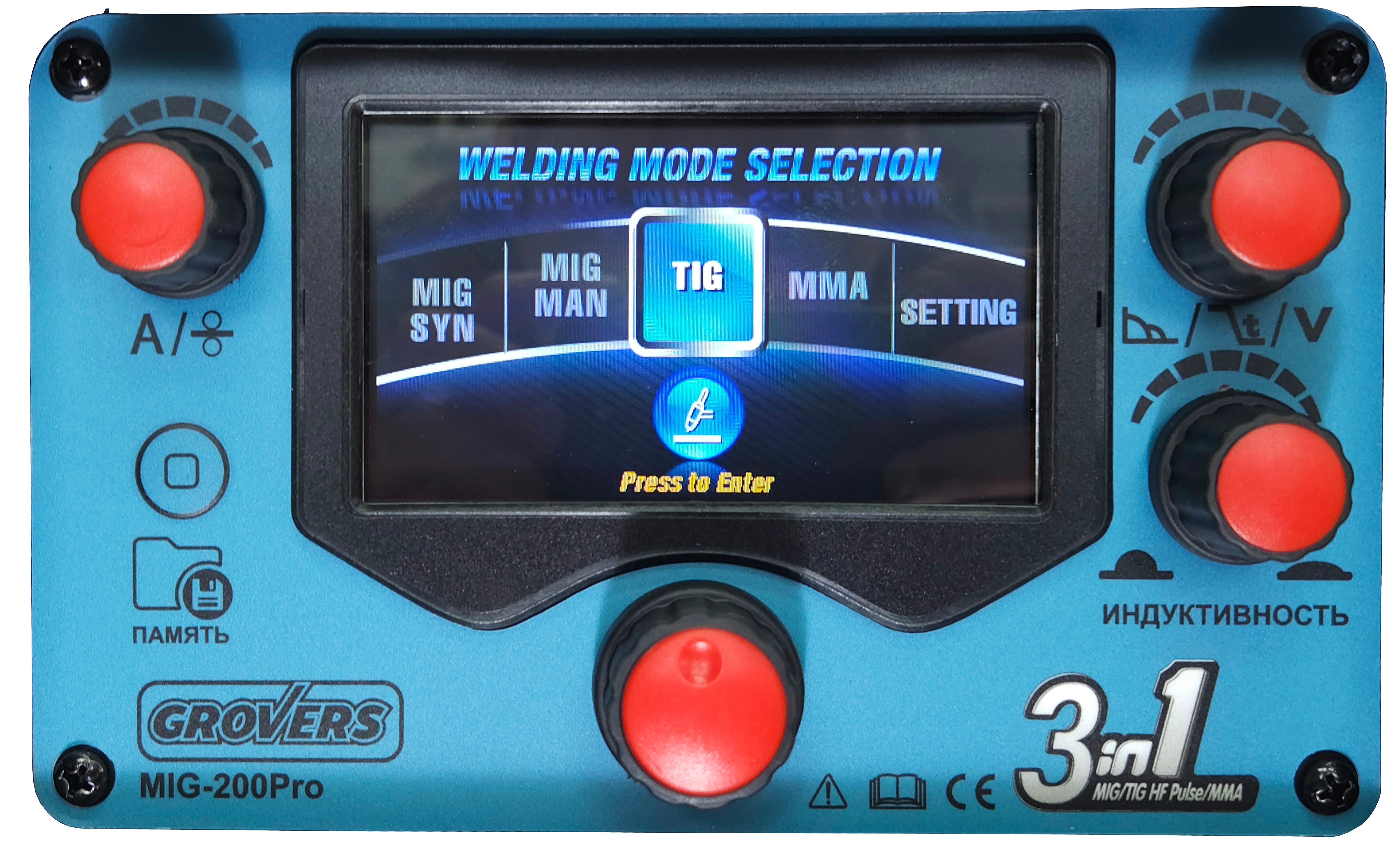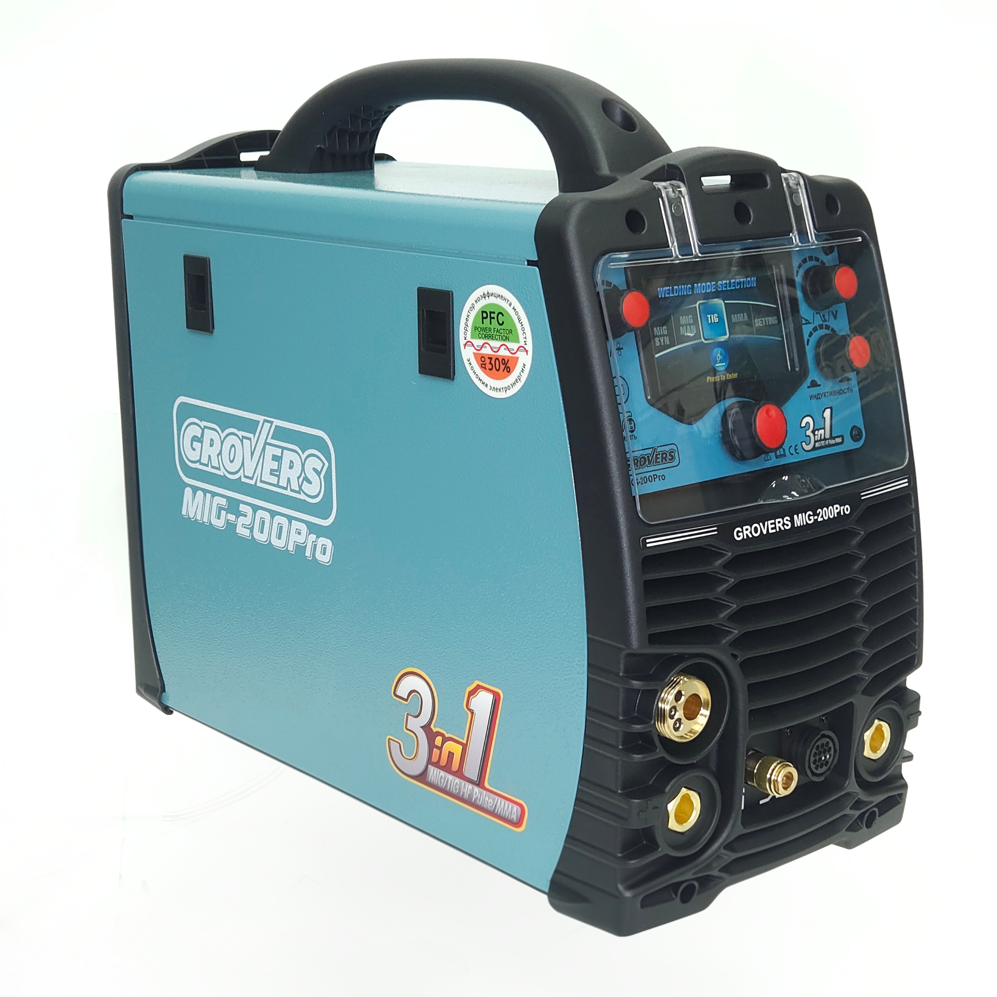 GROVERS MIG-200Pro — универсальный сварочный полуавтомат, который сочетает три полноценных вида сварки: MIG/MAG, TIG HF DC Pulse и MMA DC. Аппарат работает от сети 220 В и подходит для профессионального использования.