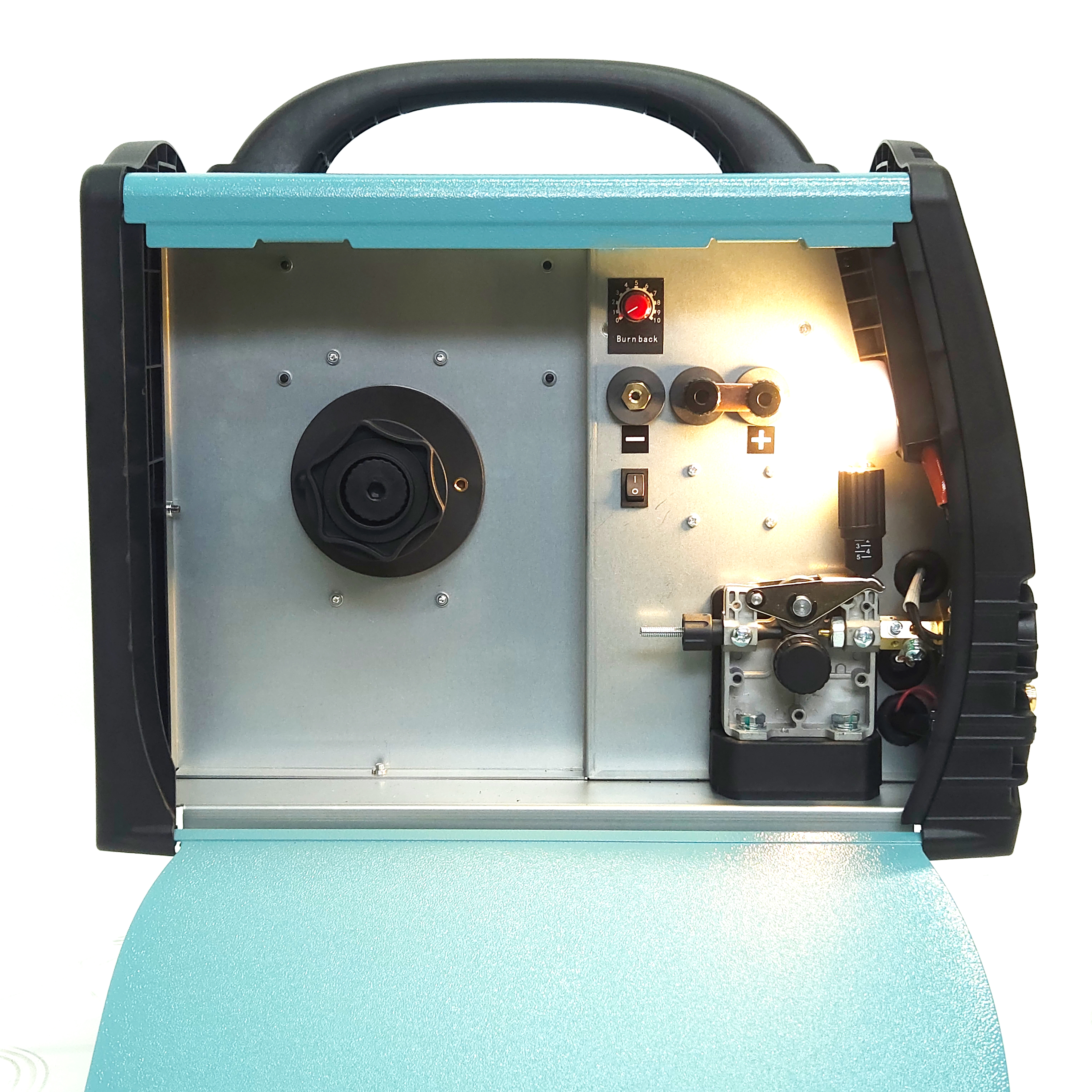 - Двухроликовый подающий механизм. Надёжная подача проволоки.